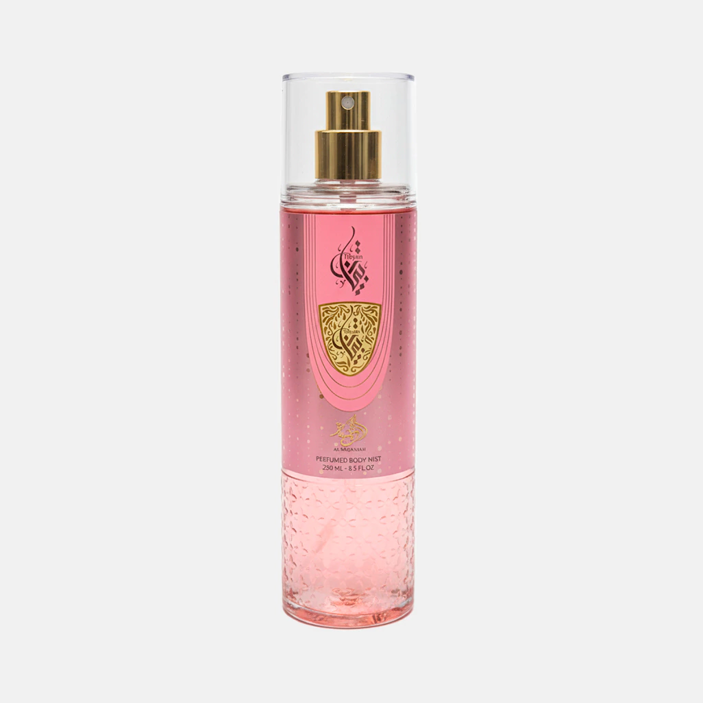 O body splash do Tibyan traz a mesma família olfativa numa versão mais leve e refrescante, ideal para borrifar generosamente no corpo, cabelo e roupa, criando uma base perfumada que é depois selada pelo eau de parfum. Juntos, os dois produtos transformam o ritual de perfume num momento de verdadeira indulgência, garantindo projeção, duração e camadas de doçura floral e gourmand.
